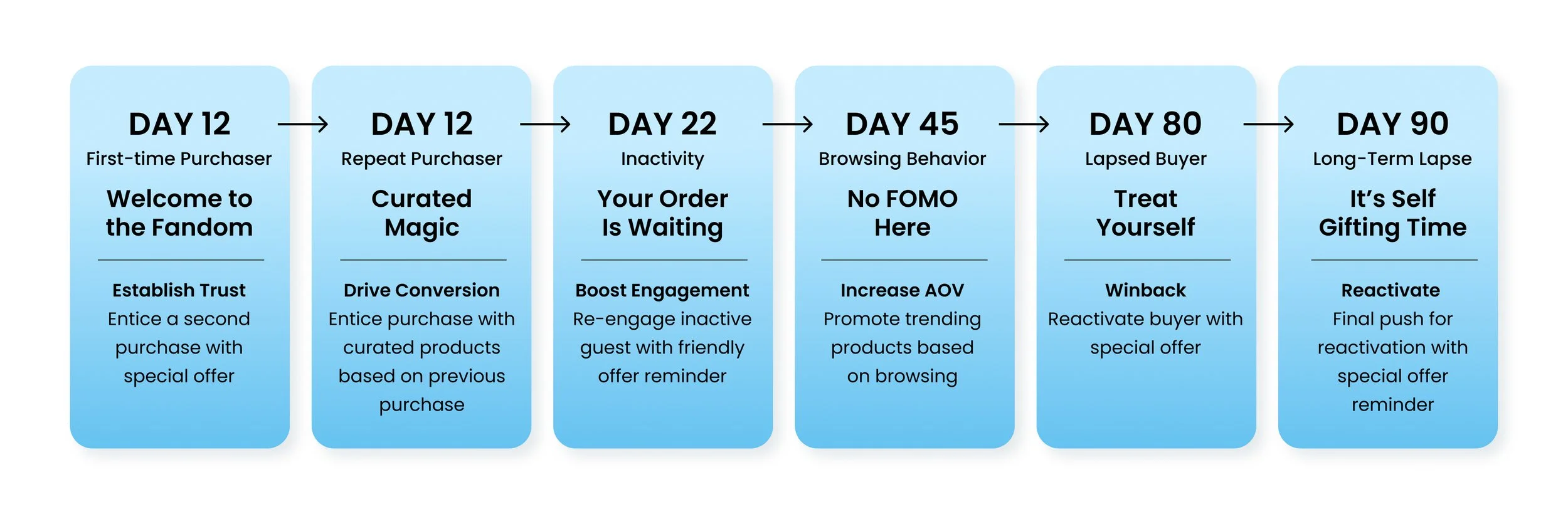 Delivered a scalable CRM lifecycle email system supporting post-purchase engagement over a 90-day window