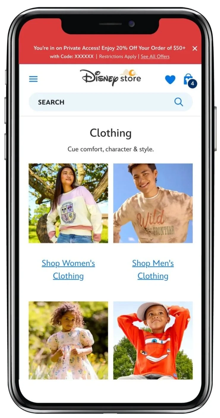 I partnered with the CRM team to design two key initiatives that strengthened Disney Store’s customer lifecycle marketing. The first focused on post-purchase lifecycle emails delivered over a 90-day period to guide engagement after checkout. The second supported a beta loyalty program designed to increase the value of CRM channels by offering exclusive benefits and encouraging sign-up across email, site, and app touchpoints.